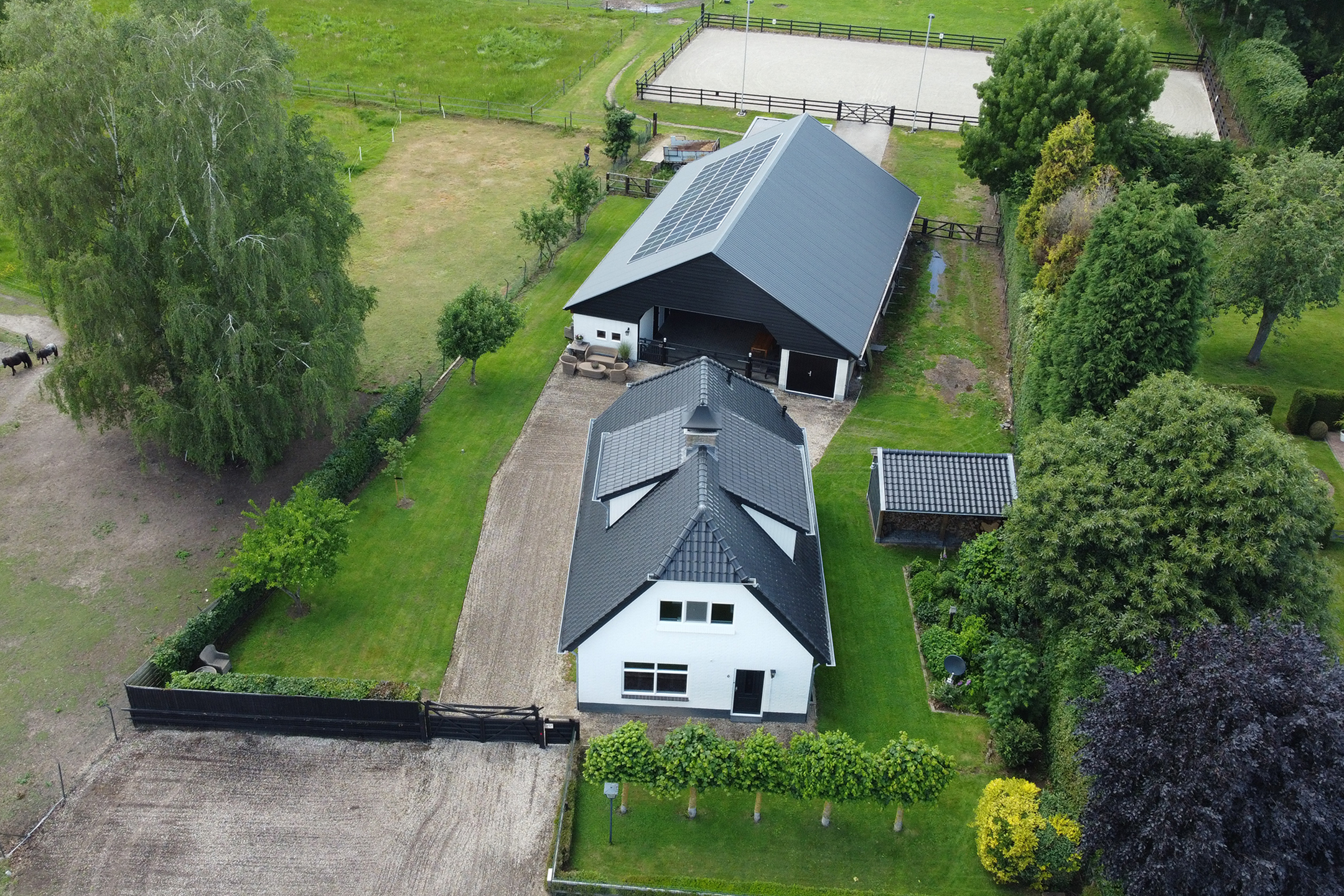 Paardenliefhebbers opgelet: Nu te koop in Montferland (Achterhoek) een geheel gerenoveerde woonboerderij met vrijstaand stallencomplex waarin 6 ruime paardenboxen, een spuitplaats met warm en koud water, een werkplaats en een verwarmde afsluitbare zadelkamer. Een Agterberg buitenrijbak (20x40m) waarin het gehele jaar gereden kan worden en eigen weiland. Dit alles aan de rand van het Montferlandse bos! Uren rijplezier in een mooi heuvelachtig bos vanaf het eigen erf. De energiezuinige woning (label B) heeft 42 zonnepanelen, een lage temperatuur CV installatie met (grotendeels) vloerverwarming en een gesloten houtkachel waardoor zeer veel comfort beschikbaar is voor een lage prijs.