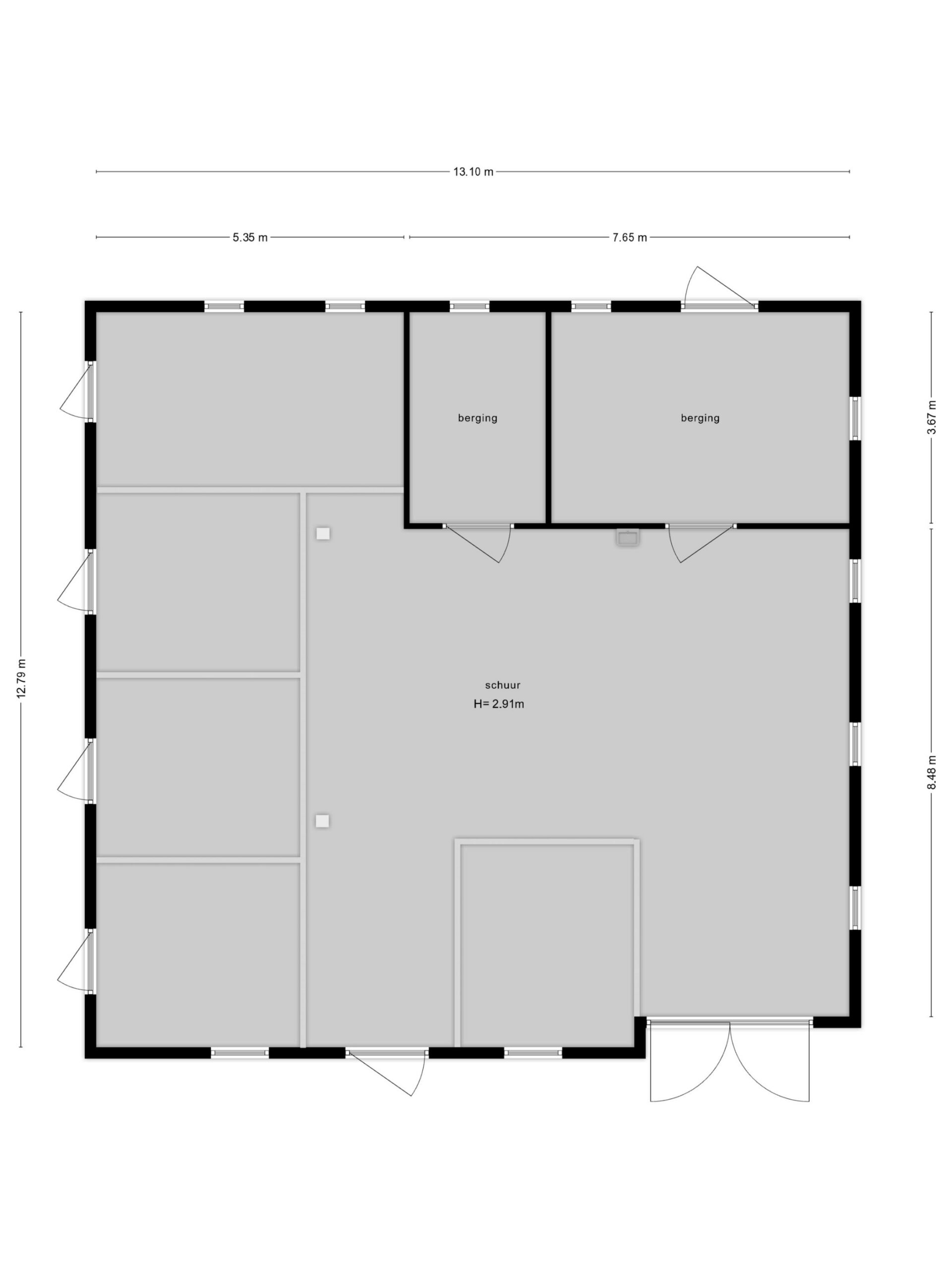 Het betreft een stalen vierkant, houtskeletbouw met pannen gedekt, betonvloer en muur- en dakisolatie.