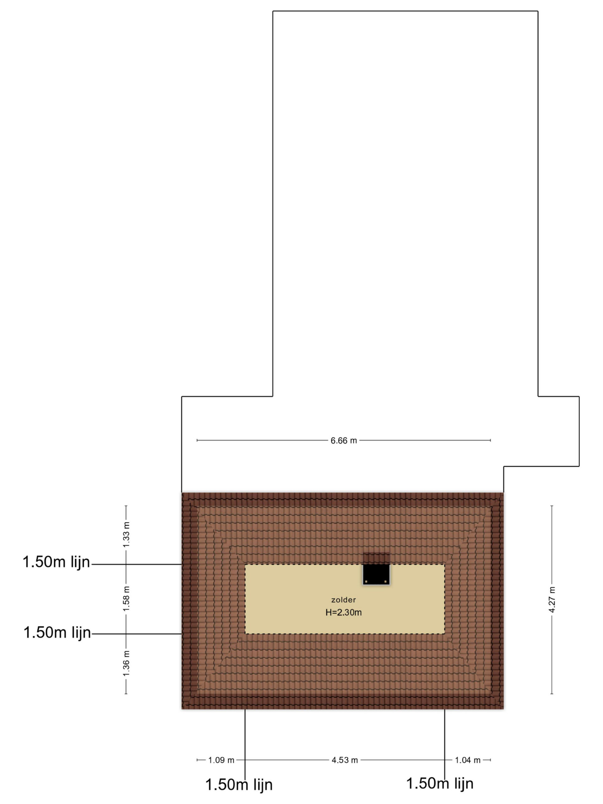 Zolderruimte, bereikbaar via vlizotrap.