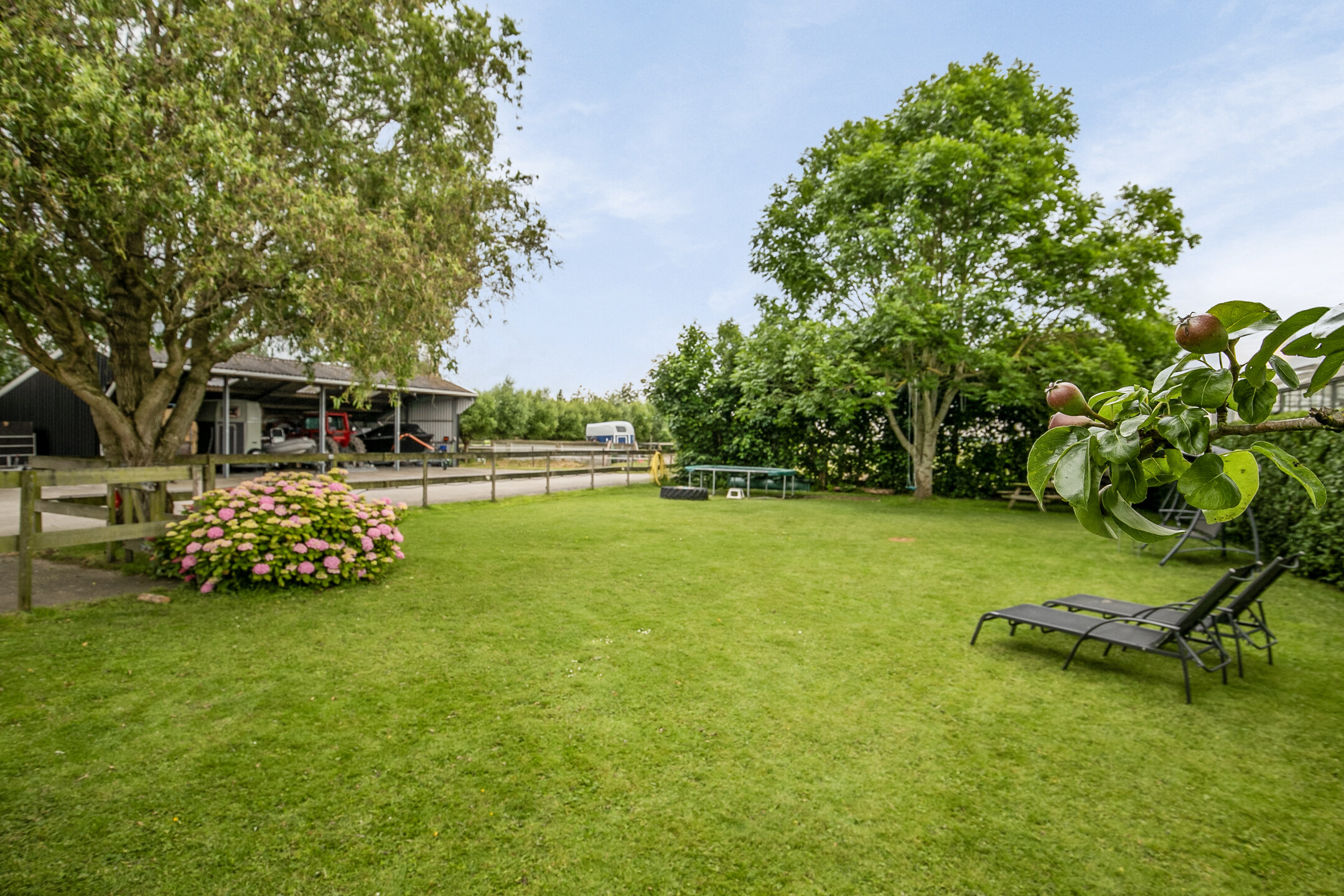 De tuin heeft een riant grasveld, gelegen aan de zijkant van het perceel.